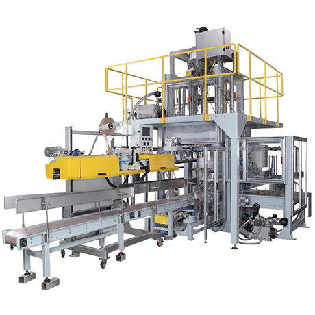 全自動(dòng)(粉料)給袋包裝系統(tǒng)主要針對(duì)化工、食品等行業(yè)而研制的新型包裝機(jī)組。該機(jī)組具有自動(dòng)供袋、上袋、稱量、填充、封口等功能??砂b物料如顏料、面粉等粉狀、超細(xì)粉料。